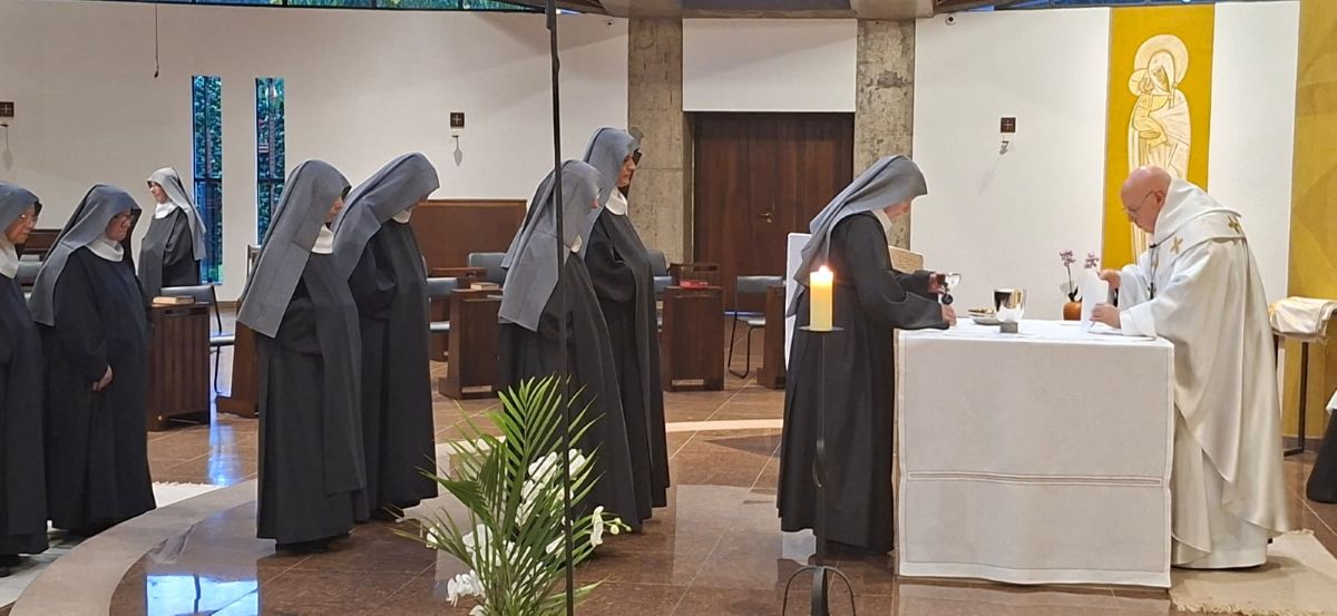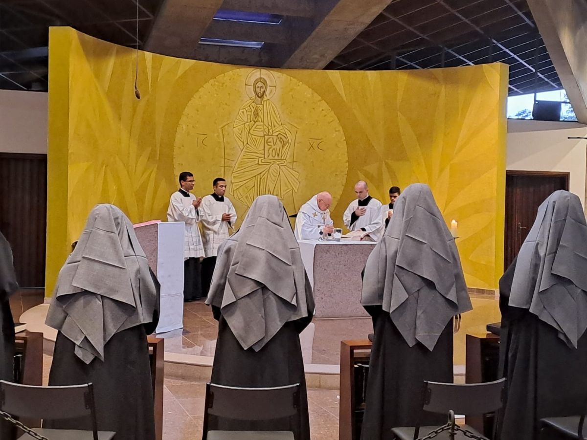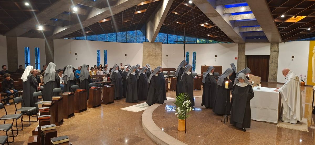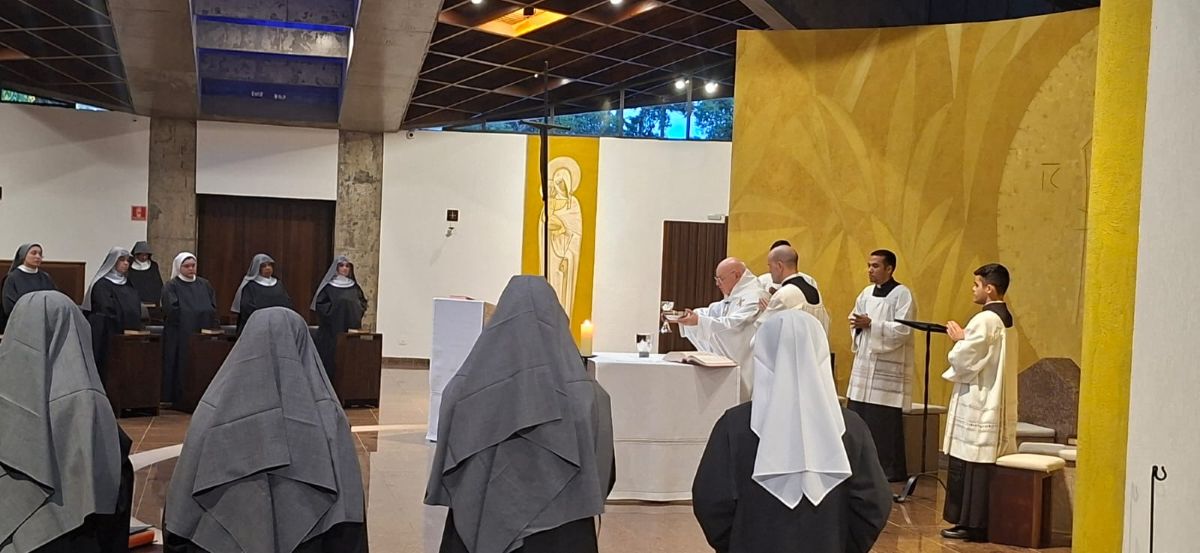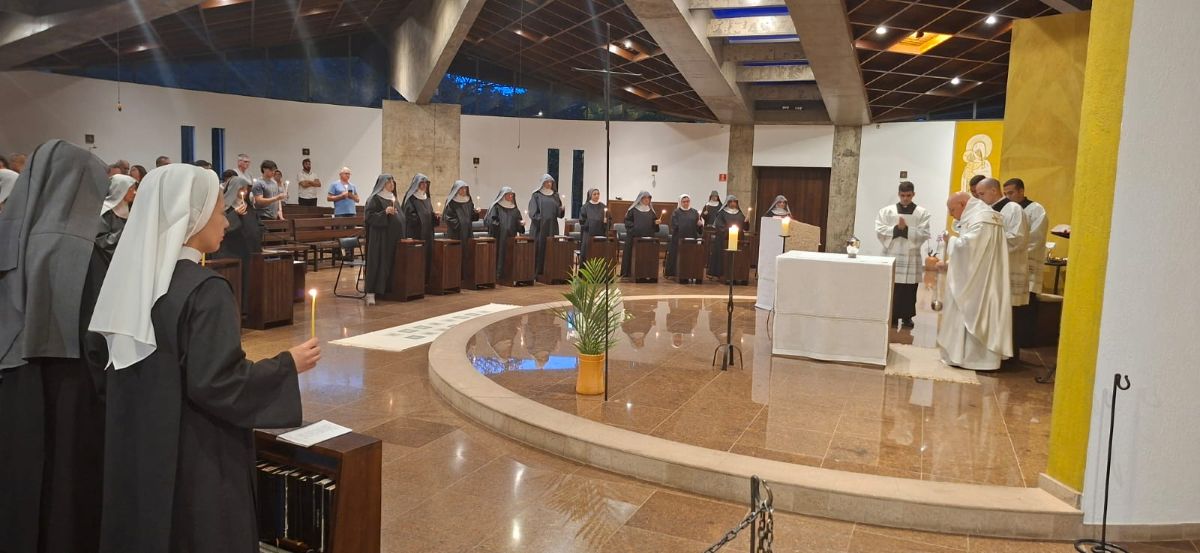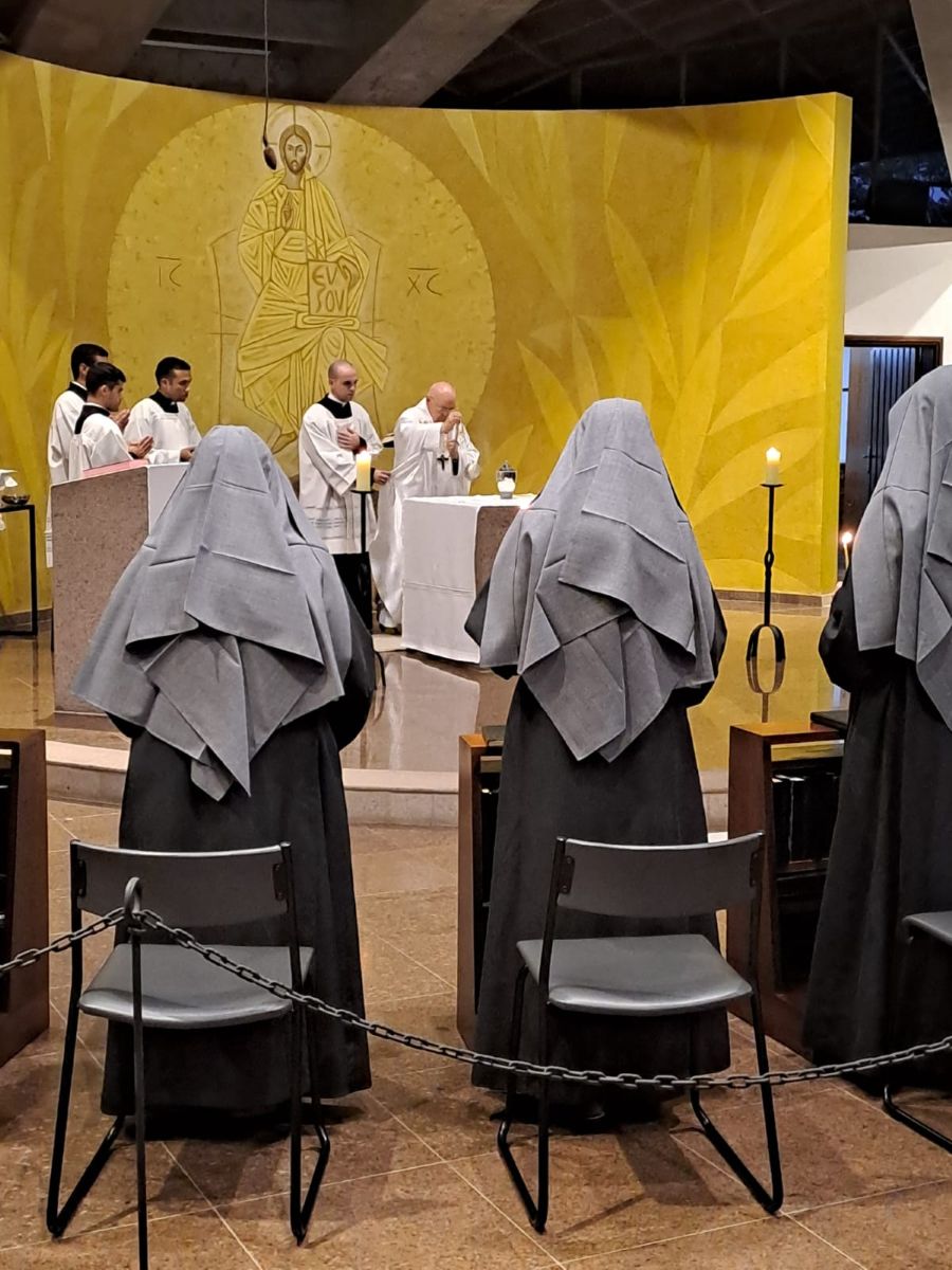 A celebração da Ceia do Senhor, na tarde desta quinta-feira, marcou solenemente o início do Tríduo Pascal em nosso mosteiro. Presidida por Dom Abade Isidoro Oliveira Preto, OSB, às 17h, a celebração reuniu as irmãs e os fiéis em profunda oração e recolhimento.